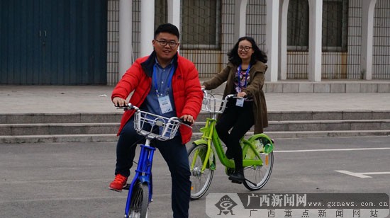 采访记者试骑公共自行车。广西新闻网记者陈仁义 摄 广西新闻网菏泽10月29日讯(记者 陈仁义)28日,聚焦“一圈一带”——第十届中国网络媒体山东行采访团来到山东省菏泽市,了解当地建设公共交通、解决城市交通难题的举措和成效。