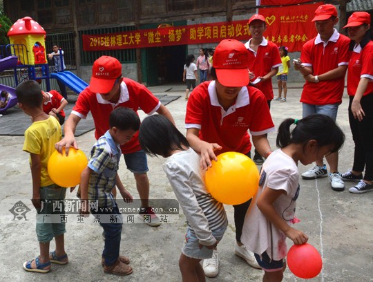 志愿者和30多名留守儿童一起游戏互动。广西新闻网通讯员 潘志祥摄