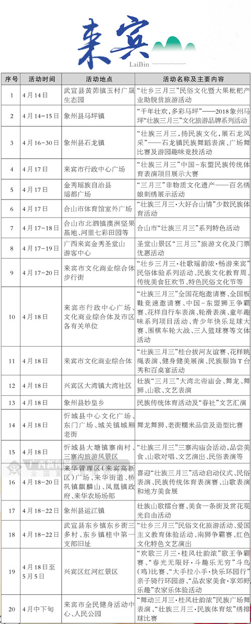 最全!2018“壮族三月三·八桂嘉年华”主要活动安排表 (15)