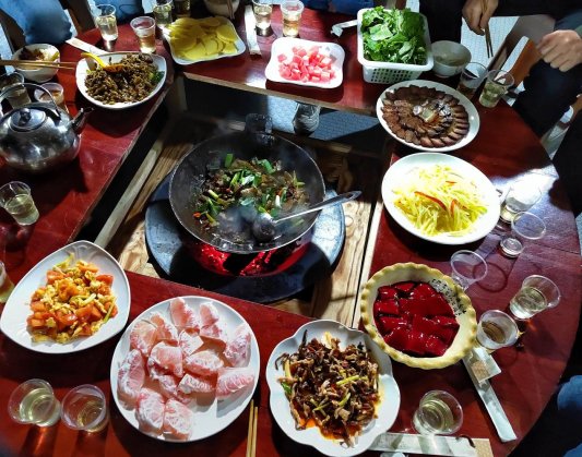 木屋民宿 让记者团印象深刻的还有热气腾腾的“杀猪饭”。“杀猪饭”的灵魂不仅是火锅配料,更是刚刚出锅的新鲜猪肉。酸辣锅底香气四溢,新鲜的肉被汤汁浸润得鲜香味美,吃上一顿,直叫人酣畅淋漓。入夜,篝火晚会上,媒体记者们手拉手围着篝火,载歌载舞,欢声笑语回荡在整个山谷。