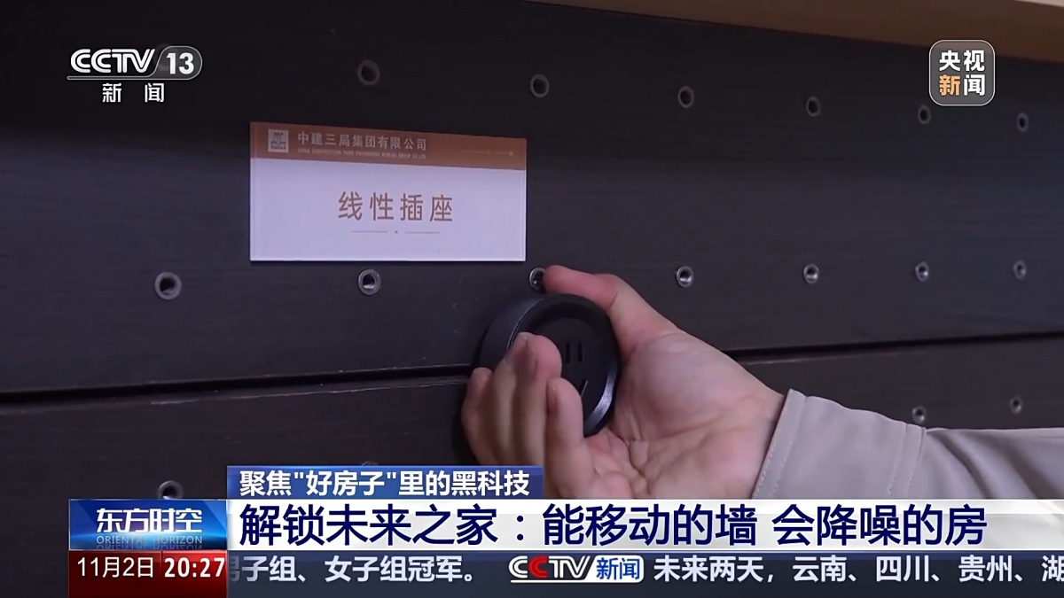这是一款全国产的三维建筑智能数字设计软件,它解决了国外同类产品“卡脖子”技术和数据安全问题,填补了我国建筑设计行业缺芯少魂的短板,它集纳了上百种智能算法和数千个智能模块,可以高效自动搭建建筑工程的三维数字模型,把智能数字化延伸到建筑项目的生产施工、后期运营全链条。和国外同类产品相比,它的效率至少提升了一倍以上,但是价格只有国外同类产品的1/4,而且它更符合中国的建筑业特点和设计标准,用我们国产的软件设计建造我们自己的好房子。 解锁未来之家: 能移动的墙、会降噪的房 这一系列新材料、新技术、新设备,如果真的用到好房子里,会给我们带来哪些改变呢? 在智能建造的车间里,专门按照好房子的标准搭建了一个概念样板间。传统住宅的层高一般都不超过2.8米,装修完之后就更矮了,会显得压抑。好房子的层高一般都要求不低于3米。在吊顶、铺完地板之后,净高还至少有2.8米。概念样板间和传统住宅最大的不同,就是在室内看不到传统的横梁和承重墙。它把原来的主横梁升级成为十几根网格状的小横梁,这样压力的分布得更加均匀。这样的好处就是整个户内所有的内墙都是可以根据需要,随意地调整户内的结构和不同房间的大小。