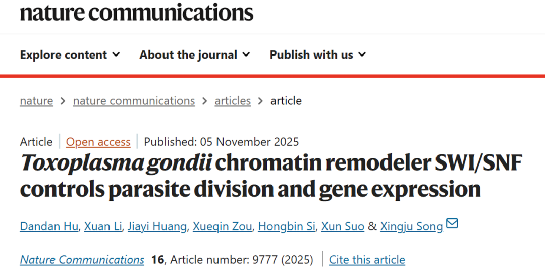 此次研究的突破意义重大,不仅首次明确了SWI/SNF复合体在弓形虫里的作用,解释了寄生虫“身份切换”和分裂调控的核心机制,而且提供了新药物靶点,这个复合体对弓形虫生存至关重要,且和人类体内的同类复合体不一样,能针对性开发新药,为治疗弓形虫病提供了全新思路。 据悉,该团队一直致力于人兽共患弓形虫病和畜禽球虫病的分子生物学、药物作用机制和耐药机制等研究。近年来,团队聚焦寄生虫表观遗传调控这一前沿热点,先后解析了多个转录因子和染色质重塑复合物对虫体生长发育的调控作用。一系列原创性成果发表在 、、 等国内外期刊上。 |