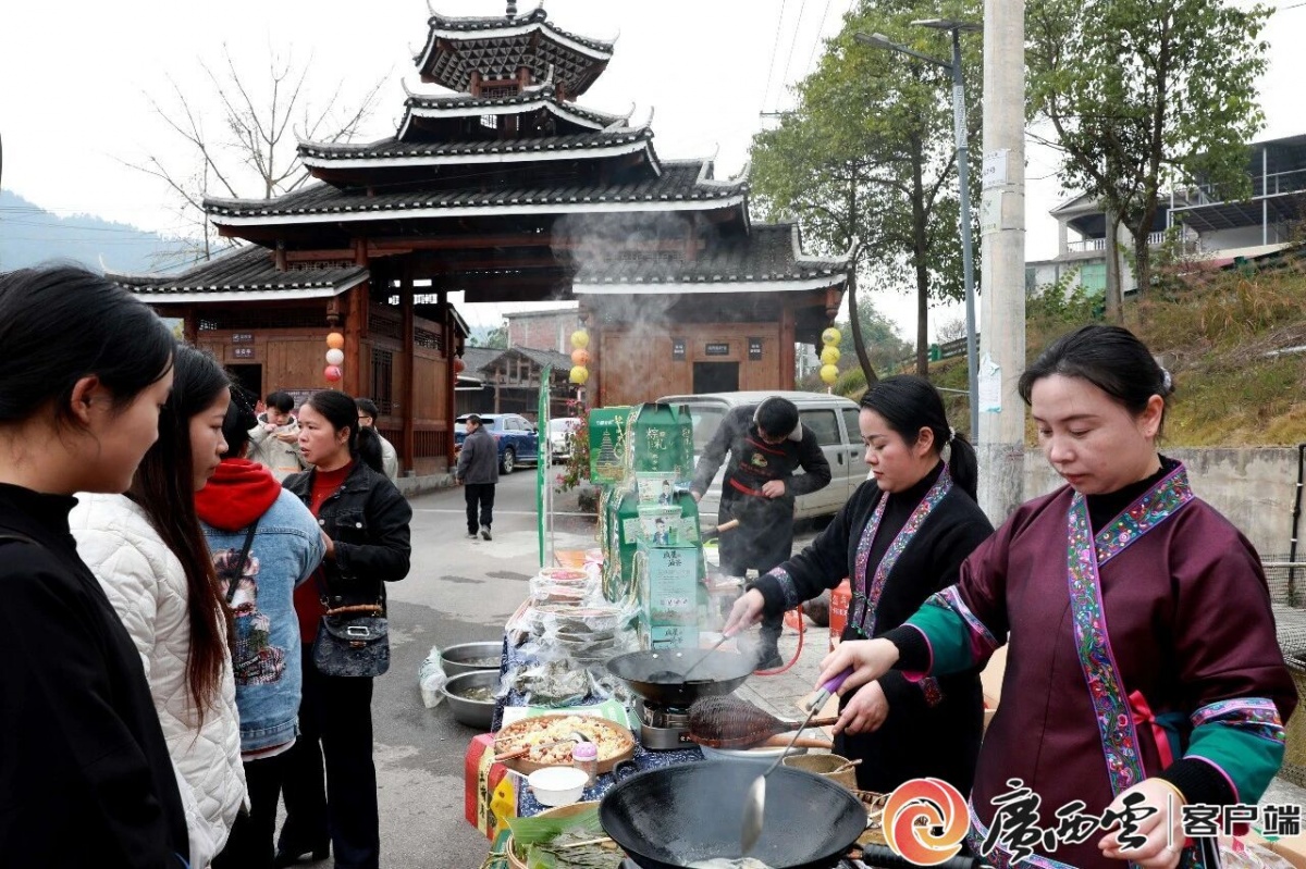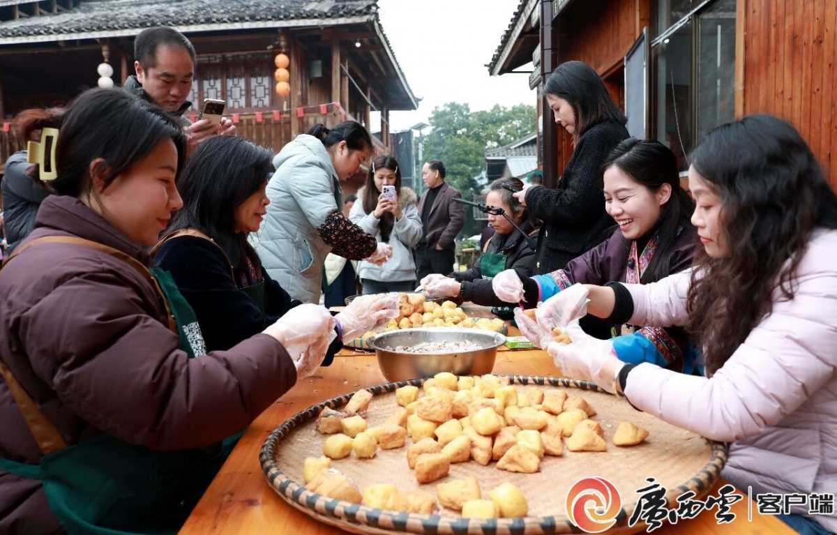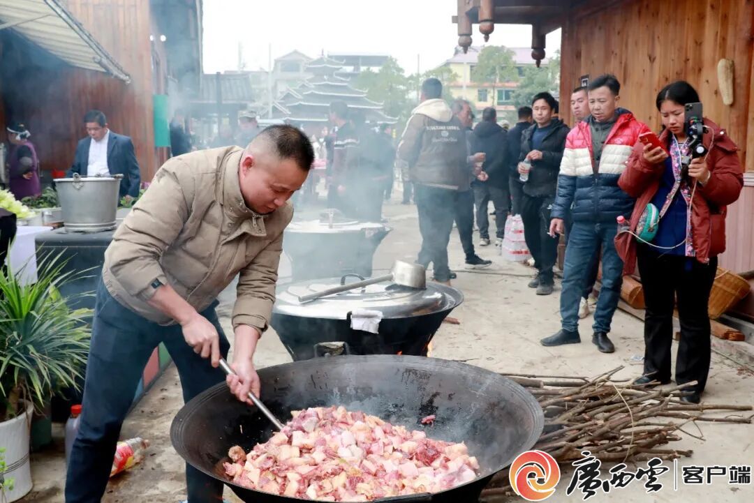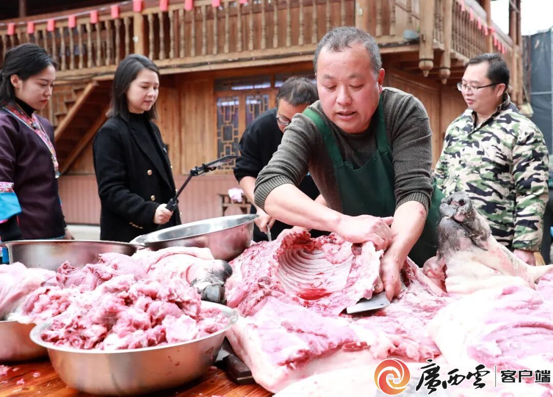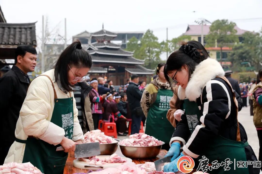 体验侗乡“刨汤宴”。视频摄制:三江融媒 1月15日,三江侗族自治县良口乡产口村千年古榕树下,人声鼎沸、年味弥漫,三江口生态旅游区“新年吃刨汤”活动在此举办,当地群众通过杀年猪、吃刨汤、捶糍粑、多耶等多彩节目,喜迎八方游客齐聚一堂,沉浸式体验侗乡非遗年俗,现场洋溢着浓浓年味。 当天上午,产口村千年古榕下人头攒动、年味弥漫。村民分工协作,杀猪备菜、捶打糍粑、酿制豆腐果,处处洋溢着欢声笑语。侗族同胞身着盛装踏歌起舞,将现场气氛推向高潮。正午时分,随着一锅锅热气腾腾的刨汤上桌,以新鲜猪肉、猪杂与时蔬慢炖而成的醇香佳肴,引得游客赞不绝口。众人围坐共品,举杯畅饮,大快朵颐,在欢声笑语间拉近彼此距离,沉浸于侗乡特有的喜庆与温情之中。