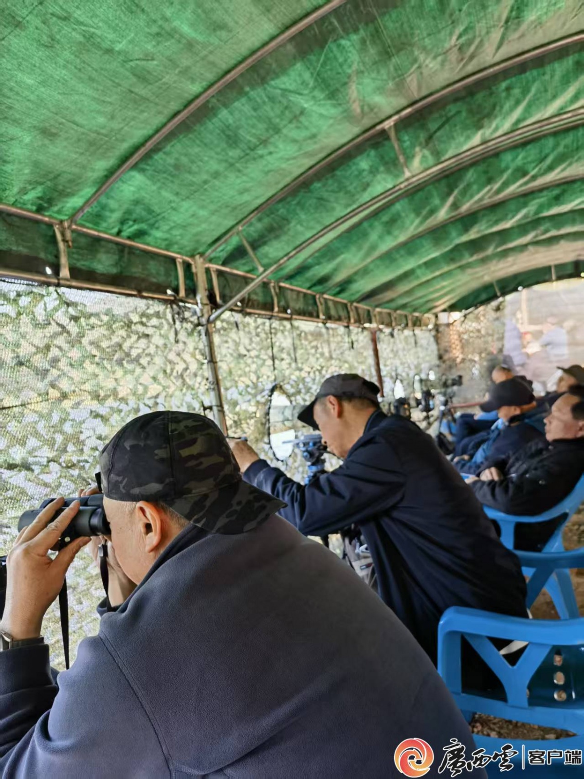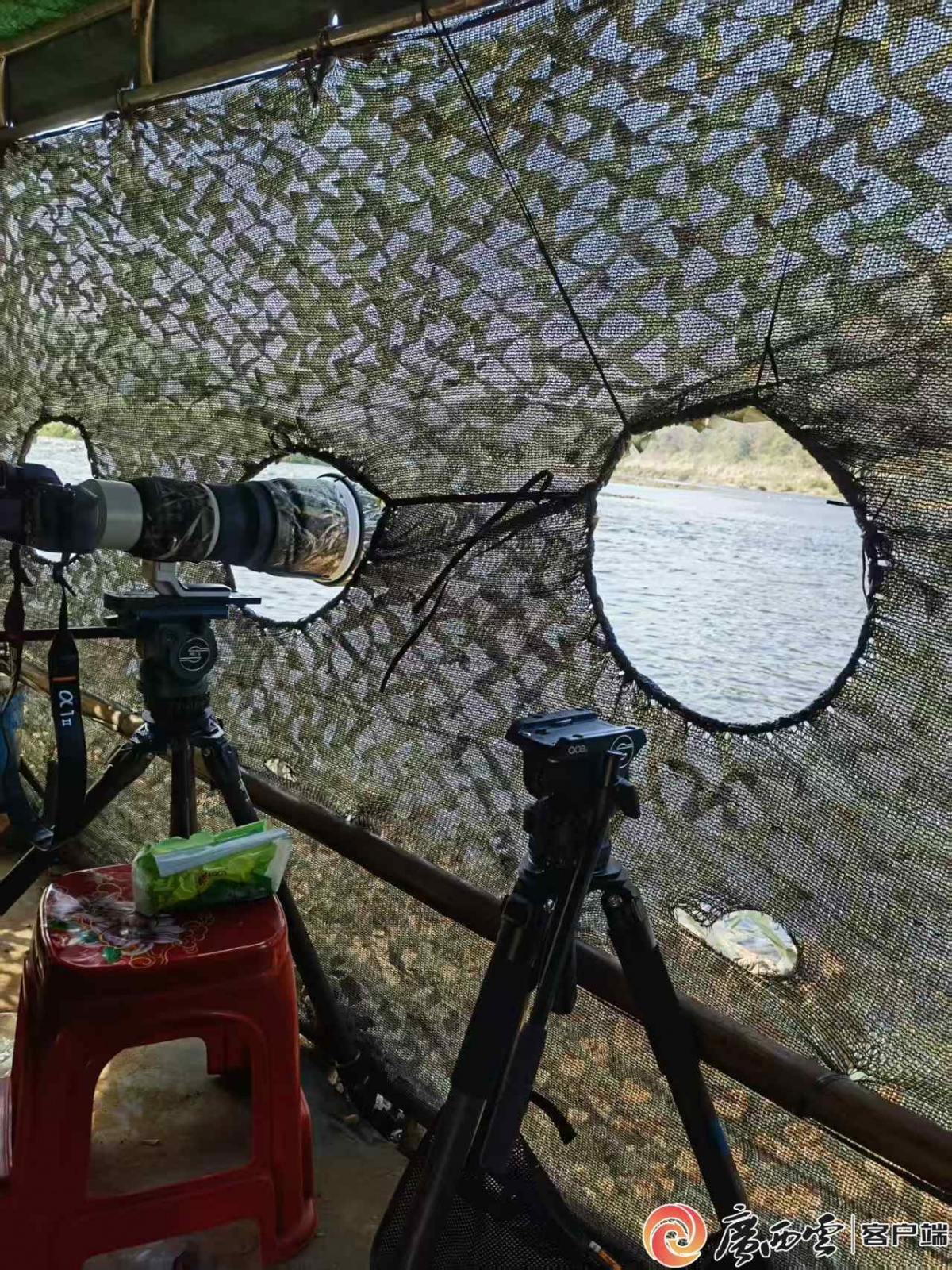 百米外,摄影师们在伪装的摄影棚内架起“长枪短炮”进行动物摄影。宣工 摄