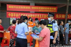 广西新闻网南宁9月23日讯(通讯员 苏畅)金秋九月,丹桂飘香,为践行企业社会责任,提升消费者金融风险抵御能力,23日上午,中国平安驻桂各专业公司联合蟠龙派出所、蟠龙社区等单位在南宁市五象新区安置点开展金融知识普及月宣传活动,平安普惠广西分公司“钱袋子守护计划”志愿者们现场向民众普及金融反诈知识,提醒消费者理性投资消费,防范金融风险,保护个人信息财产安全,守好个人和家庭的钱袋子。