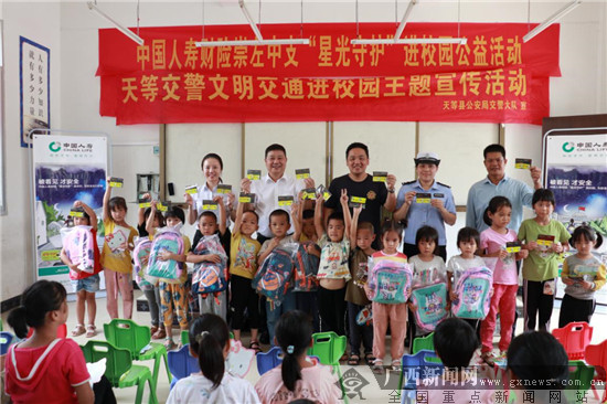 广西新闻网崇左9月24日讯(通讯员 项光明)9月23日上午,中国人寿财险崇左市中心支公司联合天等县交警大队在崇左市天等县黎亮小学开展“星光守护”进校园公益行暨金融知识普及月活动。