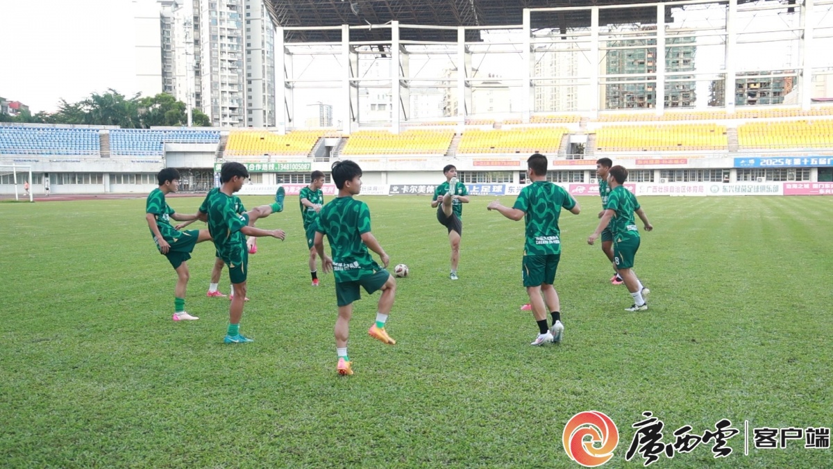东兴绿茵队员备战训练。 8月27日下午,天空澄澈,阳光明媚,东兴市体育中心的绿茵场上洋溢着紧张而专注的气氛。东兴绿茵足球俱乐部的球员们正在进行赛前训练,奔跑、冲刺、对抗,汗水映着余晖闪亮,场边不时传来教练组的提醒声。临近8月30日的第十五届“桂超”(广西足球超级联赛)1/4决赛次回合主场比赛,全队上下正全力以赴,期待在主场赛场上展现最佳状态。 据了解,在上周末的客场作战中,东兴绿茵以3:1战胜富川骏菱飞速,占得先机。根据2025年“桂超”联赛规程,本赛季进入四强的球队将直接获得2026赛季中冠联赛参赛资格。因此,本周六的比赛对东兴绿茵意义重大。